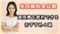 通信料金の節約術光回線の料金比較!通信費を節約できるおすすめ4選 本記事では、光回線の料金や特徴を比較しながら、自分に合った選び方で賢く節約する方法を紹介します。乱立する光回線のプランを節約志向の目線でわかりやすく解説していきますので最後までお付き合いください。 2025.05.03 2026.03.17通信料金の節約術